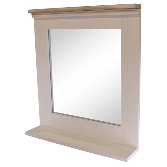 Whitewash Painted Wall Mirror With Vanity Shelf