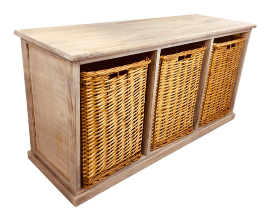 Wooden Storage Bench With 3 Large Baskets 101cm