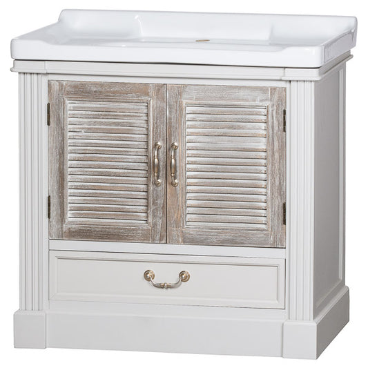 Blue & White Ceramic Lamp with Wooden Base 70cm