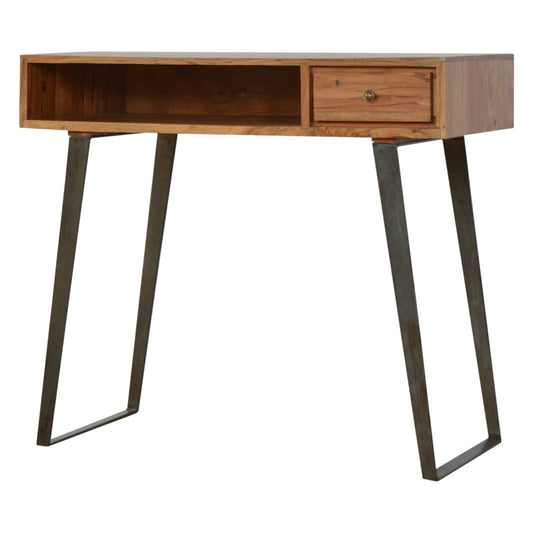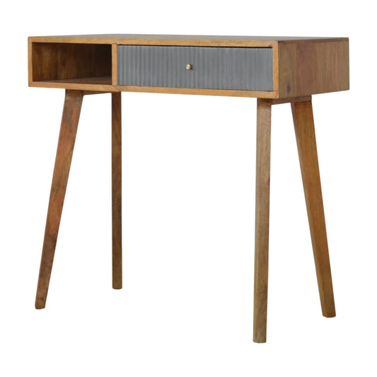 Solid Mango Wood Oak-ish Line Carving Writing Desk
