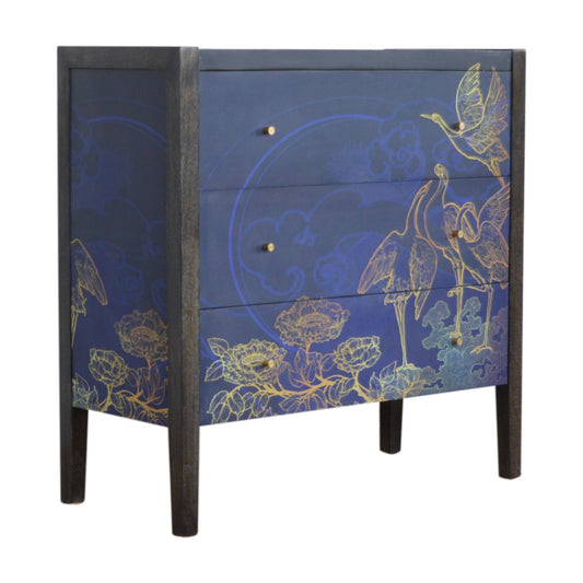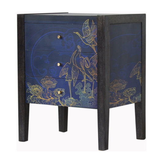 TOKYO - Three Drawer Mango Wood Midnight Blue Print Bedside