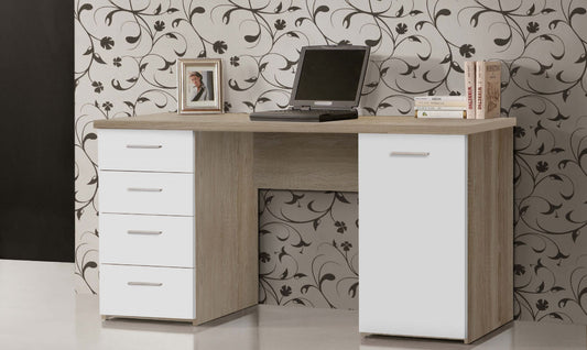 Oak and White Office Computer Desk With Drawers