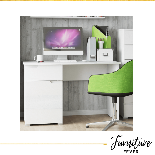 White Gloss One Drawer Computer Desk