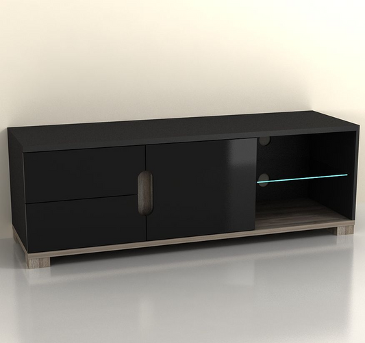 Black Gloss And Oak Effect TV Media Unit