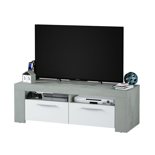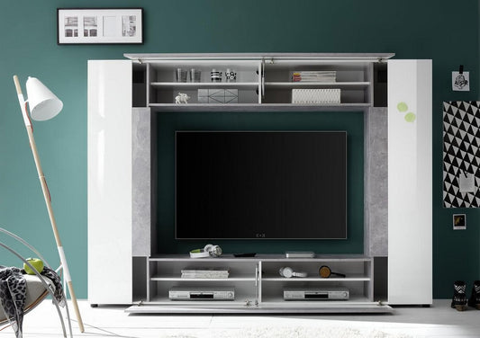 White and Concrete Grey Wall TV Entertainment Unit